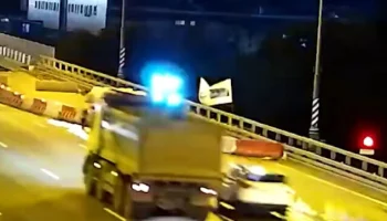 Lamborghini врезался в отбойник, перевернулся и загорелся на Международном шоссе в Москве