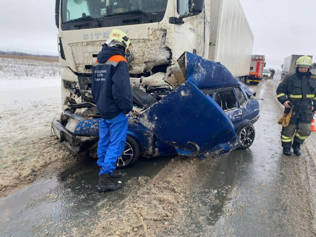 ДТП произошло 8 января в 10:55 утра на 60 километре обводной автодороги Самары в Волжском районе Самарской области. Водитель автомобиля ВАЗ-2199 выехал на встречную полосу и столкнулся с большегрузом Sitrak, который перевозил шампанское.