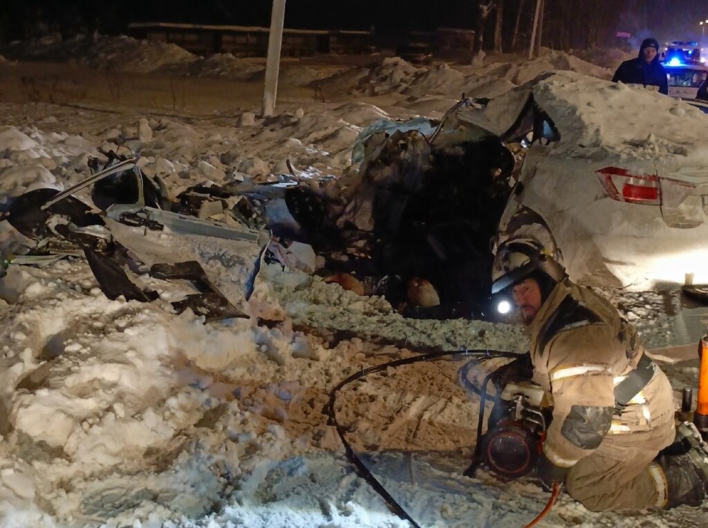 В результате столкновения погибли два человека: водитель и пассажир легковушки. Причины и обстоятельства произошедшего устанавливаются. Сообщается, что во время ДТП был сильный снегопад.