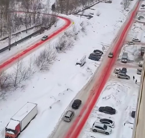 Жителей микрорайона КСМ в Новосибирске напугал «кровавый» след, появившийся утром на дорогах. Как рассказали очевидцы, причиной стала красная краска, вытекшая из грузовика, который в это время развозил стройматериалы.