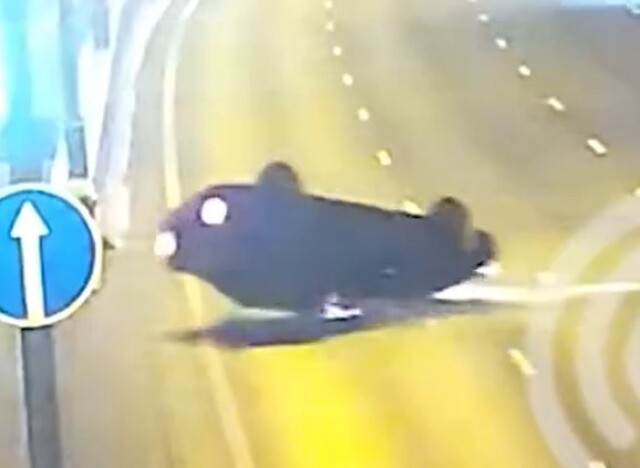 ДТП произошло на 106 км МКАД. Водитель большегруза при перестроении в правую полосу не заметил легковушку, которая от удара перевернулась и врезалась в ограждение.