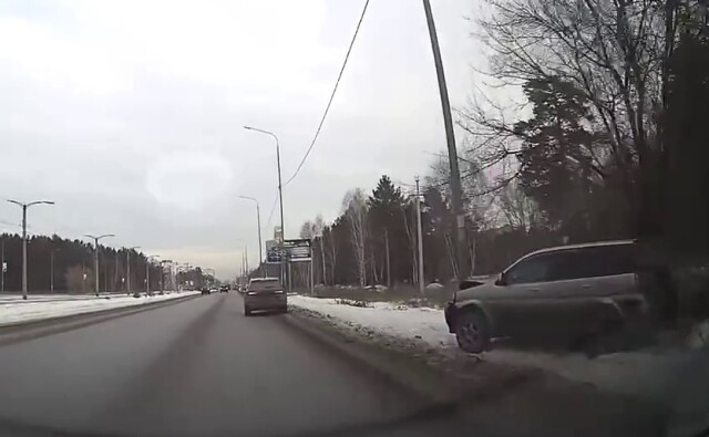 На Ленинградском проспекте в Ангарске водитель «Хонды» пытался опередить справа темный внедорожник, однако маневр ему не удался.