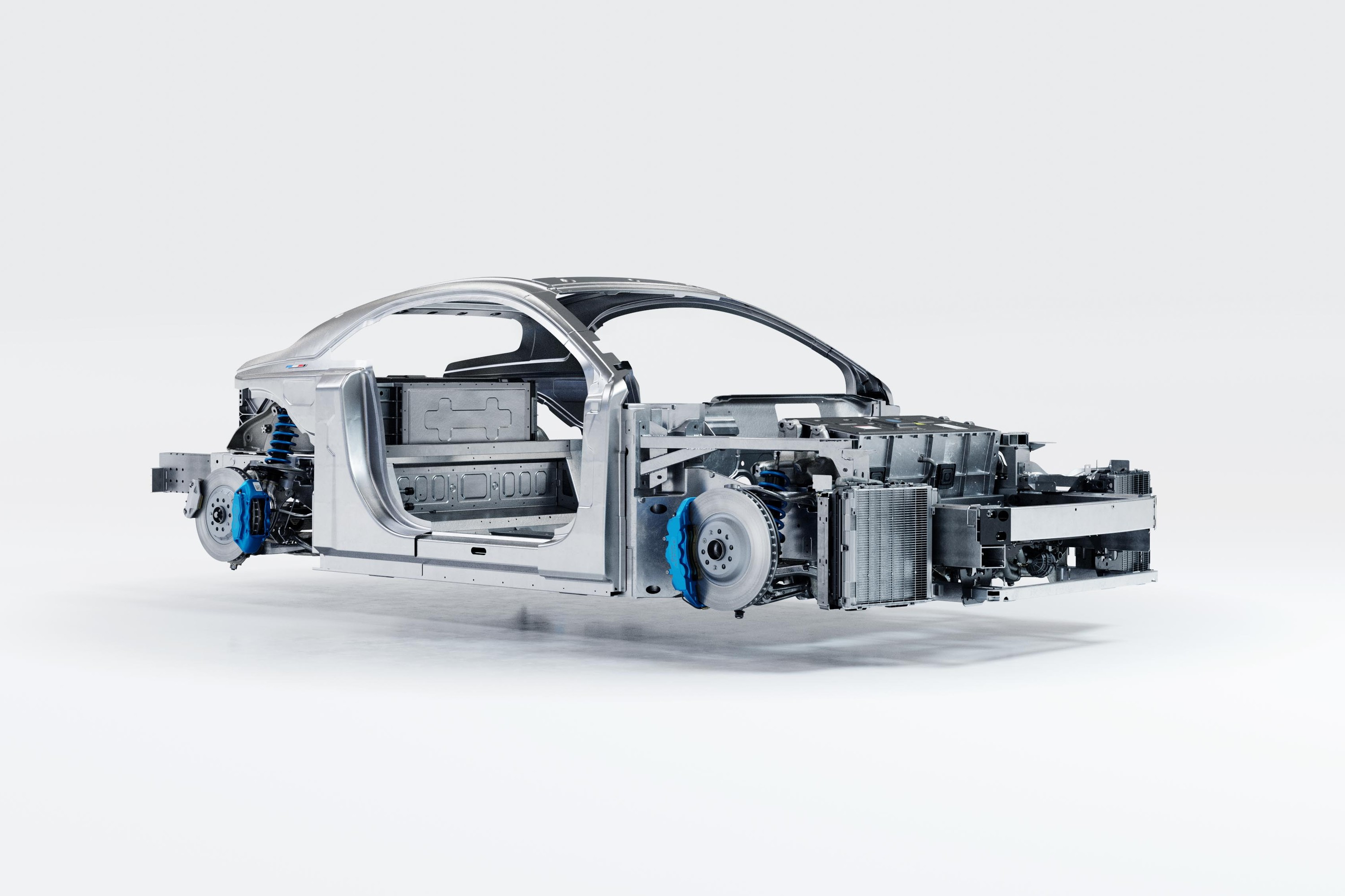 2 / 2 Платформа APP имеет 800-вольтовую электрическую архитектуру, батарея в ней разделена на два блока, они расположены над передней и задней осями — это решение позволило опустить кресло водителя максимально низко. Задний батарейный блок заметно крупнее переднего, развесовка будет примерно такая же, как у современного бензинового купе — 40:60 в пользу задней оси. Кузов и шасси выполнены из алюминия, сварки будет мало, вместо неё — заклёпки и клеевые соединения. Подвеска — пружинная, на двойных поперечных рычагах «по кругу».