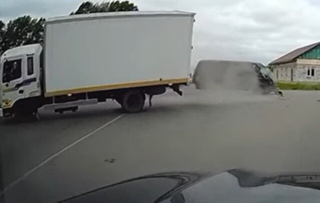 Момент ДТП на перекрестке под Новосибирском: грузовик не уступил дорогу микроавтобусу