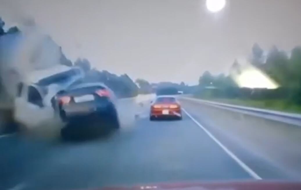 Момент ДТП под Северодвинском: «Лада» выехала на встречную и столкнулась с двумя автомобилями