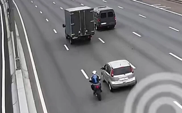 На МКАД мотоциклист пытался играть в «шашки» и попал в ДТП
