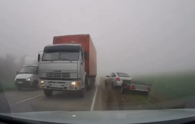 Обгон в условиях плохой видимости: к счастью, трагедии удалось избежать