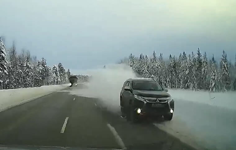 Водитель авто с видеорегистратором, пытаясь уйти от столкновения, вылетел во встречный кювет. Hyundai Palisade, двигавшийся за Volvo, съехал в противоположный кювет. Виновник с места происшествия уехал. К слову, водитель фуры тоже не остановился.