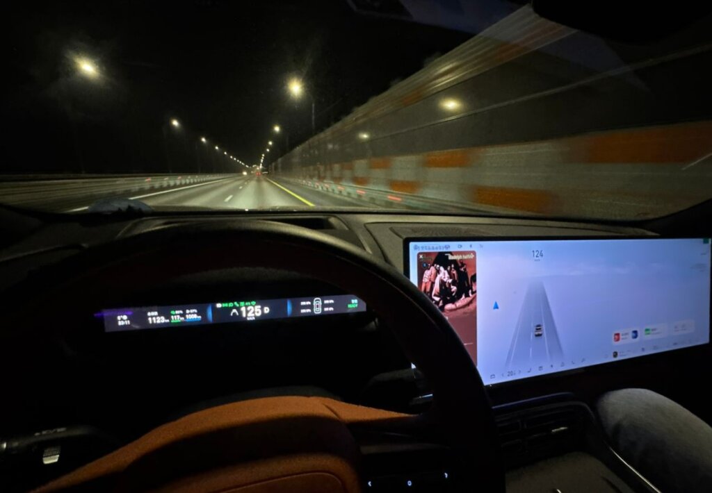 При ближайшем рассмотрении автомобиль поразил автора своей технологической насыщенностью. В его арсенале — три электромотора (два на задней оси и один на передней), двухкамерная пневматическая подвеска, матричные фары с классическим, а не чрезмерно футуристичным дизайном, двойное остекление, три ряда сидений и интеллектуальная подвеска Magic Carpet. Особенно впечатлила функция «танкового разворота» (сокращения радиуса поворота за счет разной скорости вращения колес), о чем система честно предупреждает, упоминая повышенный износ резины.