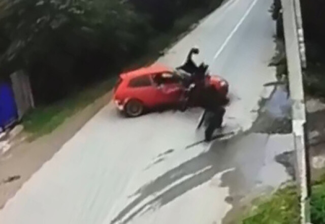 Момент столкновения попал в объектив камеры уличного наблюдения.