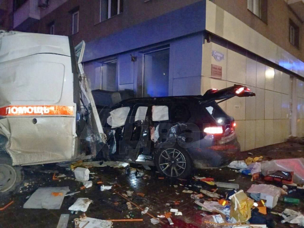 7 февраля в 1:50 ночи на пересечении проспекта Славы и улицы Попова в Белгороде 31-летний водитель автомобиля BMW Х7 проехал на запрещающий сигнал светофора и столкнулся с машиной скорой помощи, после чего оба автомобиля вылетели с дороги врезались в столб и стену здания.