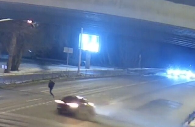 ДТП произошло на перекрестке Московская — Фурманова в Екатеринбурге. Автомобиль врезался в столб и едва не сбил двух велосипедистов и пешехода. Происшествие попало в объектив камеры.
