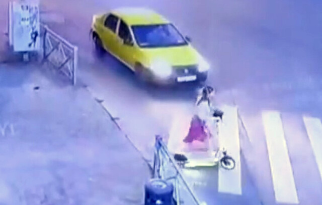 На пересечении проспекта Мира и улицы Карла Маркса в Калининграде водитель легкового автомобиля совершил наезд на девушку, которая с самокатом переходила дорогу по пешеходному переходу. Пострадавшую с травмами доставили в больницу. Момент наезда запечатлела камера.