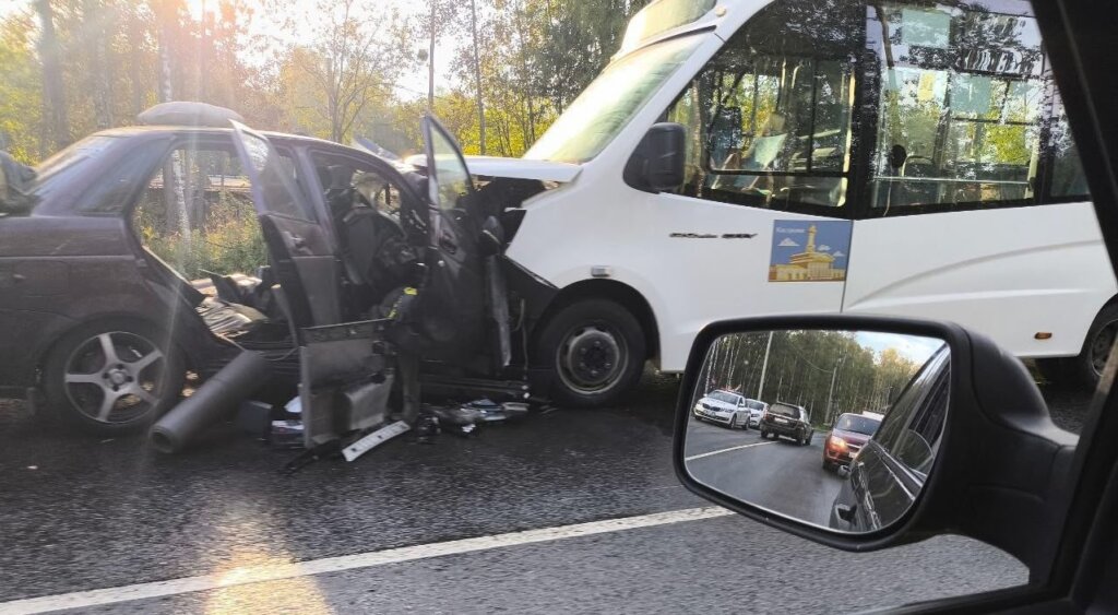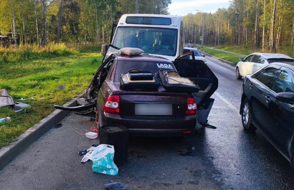 Водитель легковушки получил травмы и был госпитализирован. К счастью, в салоне маршрутки никого не было — автобус только готовился к рейсу. Водитель не пострадал.