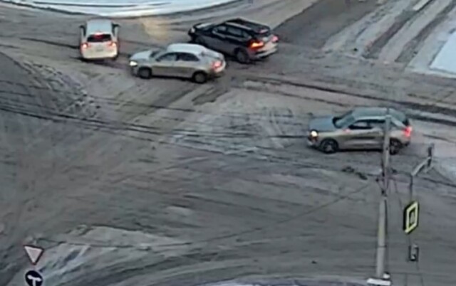 ДТП произошло на перекрестке Молокова — Батурина в Красноярске. Водитель черного кроссовера проехал на красный, столкнулся с автомобилем и скрылся. Происшествие попало в объектив камеры уличного наблюдения.