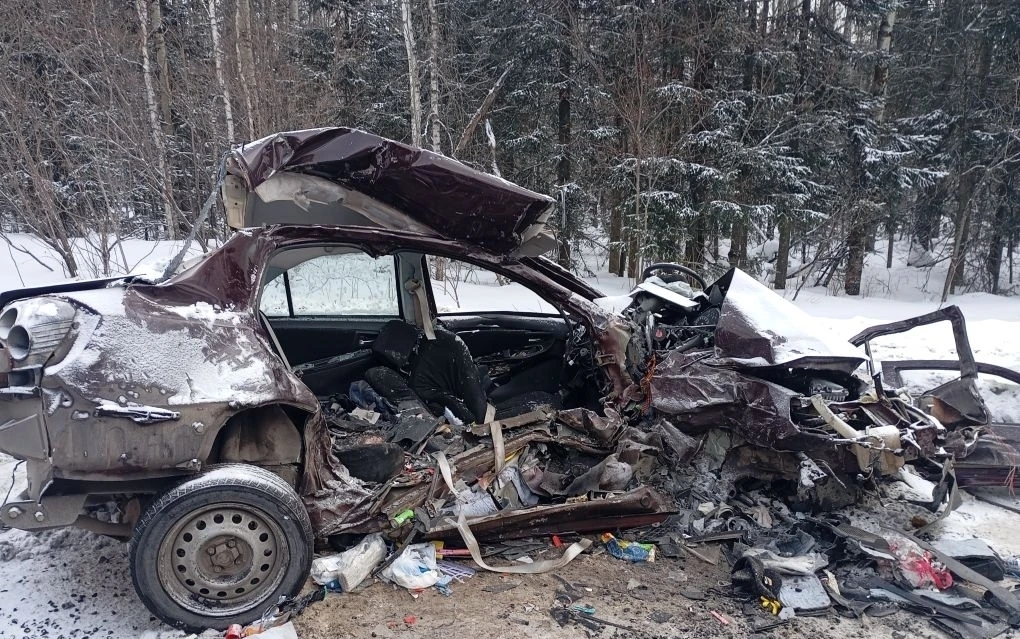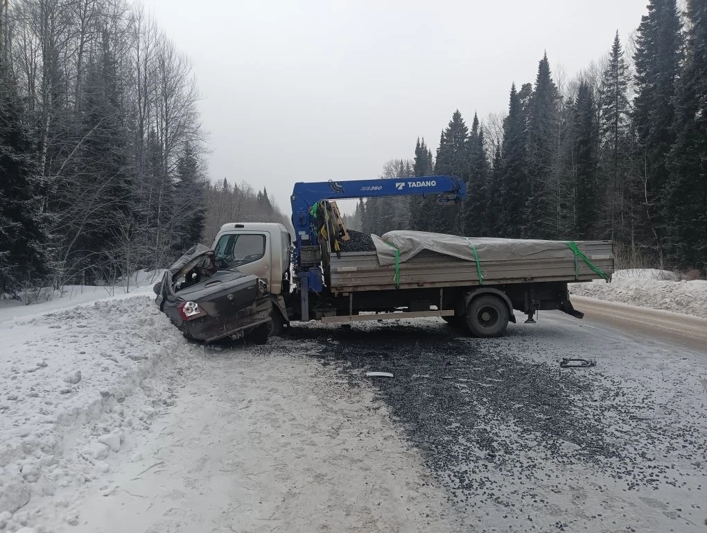 В Красноярском крае легковой автомобиль смяло от столкновения с грузовиком