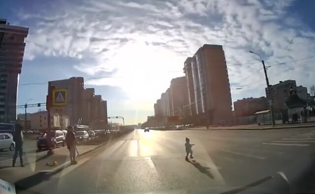 Инцидент произошел на пересечении Софийской улицы и проспекта Славы в Петербурге. Ребенок выбежал на проезжую часть и едва не попал под колеса автомобиля. Мать спокойно смотрела на происходящее и не сразу увела ребенка с проезжей части.
