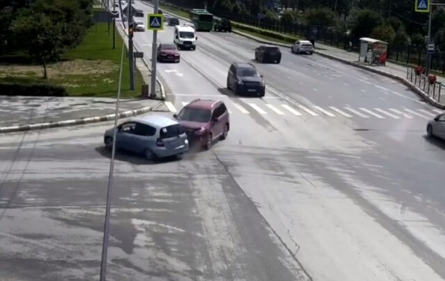 ДТП произошло на пересечении проспекта Мира и улицы Есенина в Южно-Сахалинске. Водитель минивэна поворачивал налево и не пропустил внедорожник, который двигался во встречном направлении.