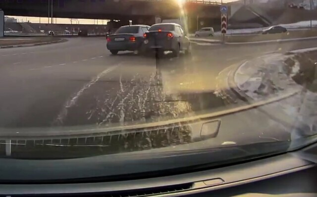 «Вину не признал»: Lada и Mitsubishi столкнулись на кольце Лесников в Красноярске
