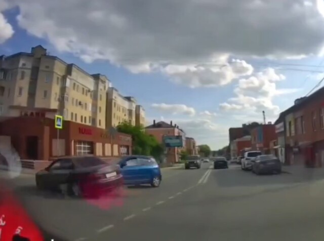 ДТП произошло в Омске на Булатова. Водитель седана выехал не глядя на перекресток, где в него въехал хетчбэк. Момент столкновения запечатлел видеорегистратор очевидца.