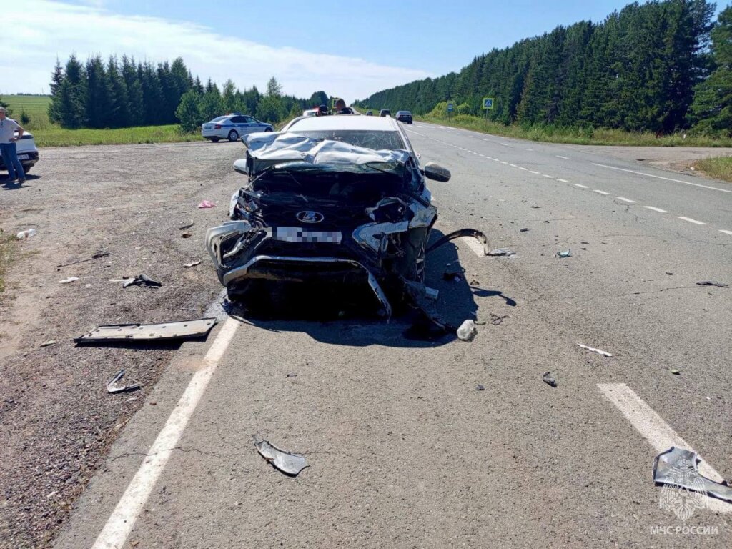 2 августа, после полудня, на 21 километре автодороги Можга — Бемыж в Можгинском районе Удмуртии 61-летний водитель автомобиля «Шевроле Нива» при выезде со второстепенной не уступил дорогу автомобилю «Лада Веста» под управлением 30-летней женщины.