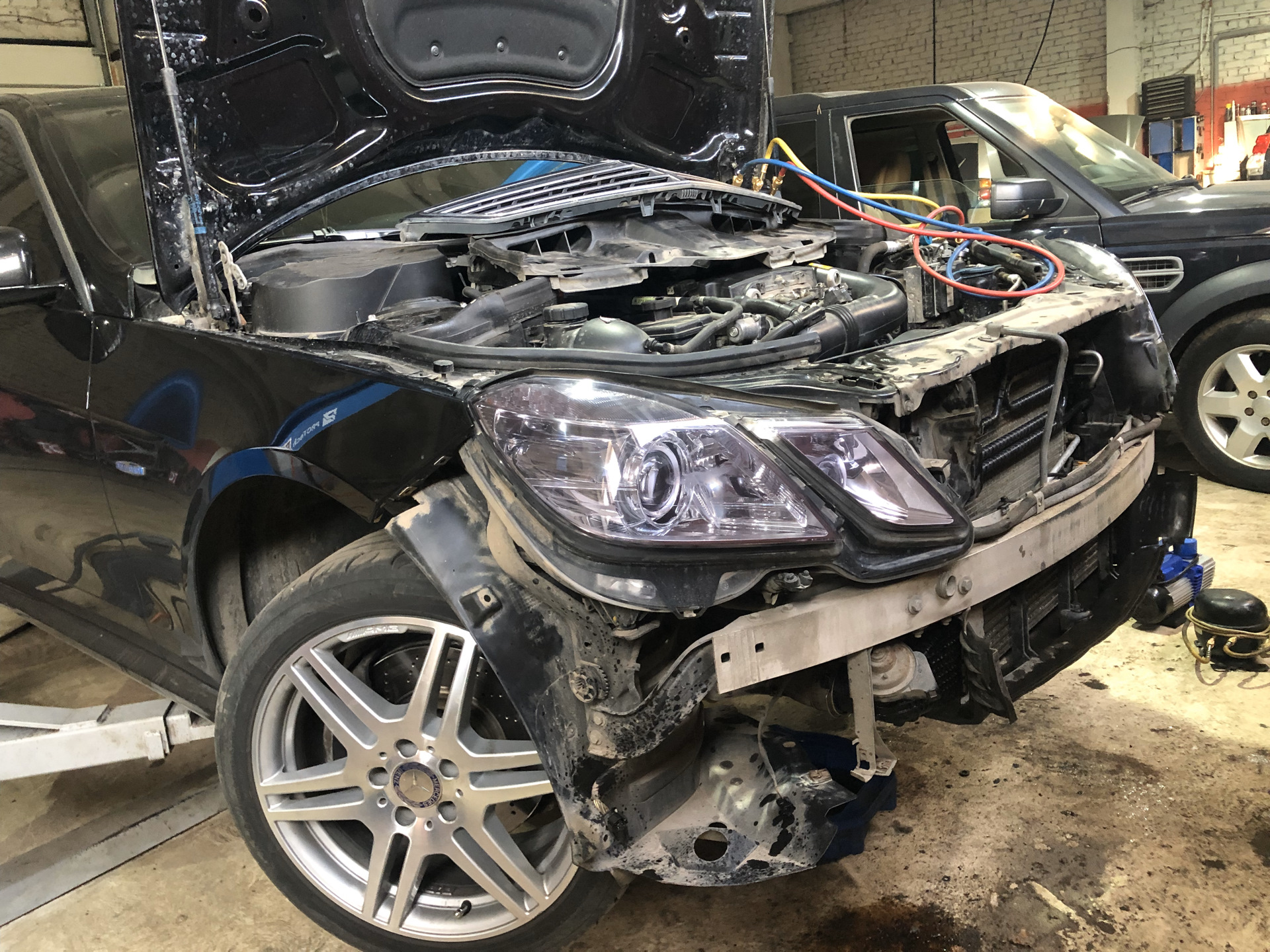 Вобщем, делаем так: отсоединяем крепления радиатора двигателя, снимаем лишнее, вроде диффузора вентилятора, вынимааем радиатор из пазов и отводим назад, насколько получится. Антифриз не сливаем, трубки не отсоединяем. Продуваем все хозяйство Karcherом (у кого есть), или струей воды из шланга и щеткой (аккуратно, не погнуть пластины радиатора).