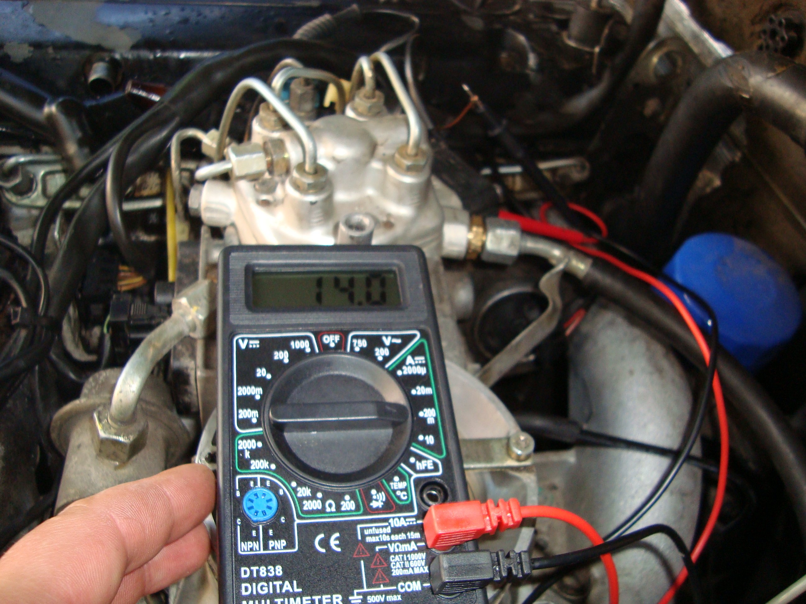 Когда нет под рукой прибора измеряющего скважность, можно проводить измерения с помощью вольтметра. Сразу скажу что если по ошибке включить прибор в ражиме АМПЕРМЕТРА, то мозгам придет конец! Это оценочный способ, но тем не менее действенен. Двигатель прогреет до рабочей температуры, работает на ХХ, подключаем вольтметр к ногам 2 и 3 колодки диагностики, отсоединяем сигнальный провод ЛЗ и засекаем показания вольтметра — оно будет примерно равно Uлз=(Uакб-1)/2, например на АКБ у нас 14В, тогда вольтметр покажет (14-1)/2~6.5В далее восстанавливаем сигнальный провод ЛЗ и крутим регулировку СО пока показания вольтметра не будут колебаться около Uлз. В принципе, вольтметр покажет и текущие ошибки контроллера, например при отключенном датчике температуры прибор покаджет ~ (Uакб-1)*(100-30)/100 при Uакб=14В прибор покажет ~ 9.1В (ошибка 30%). Много ума не надо чтобы составить табличку соответствия процентов напряжению на колодке при заданном напряжнии аккумулятора.