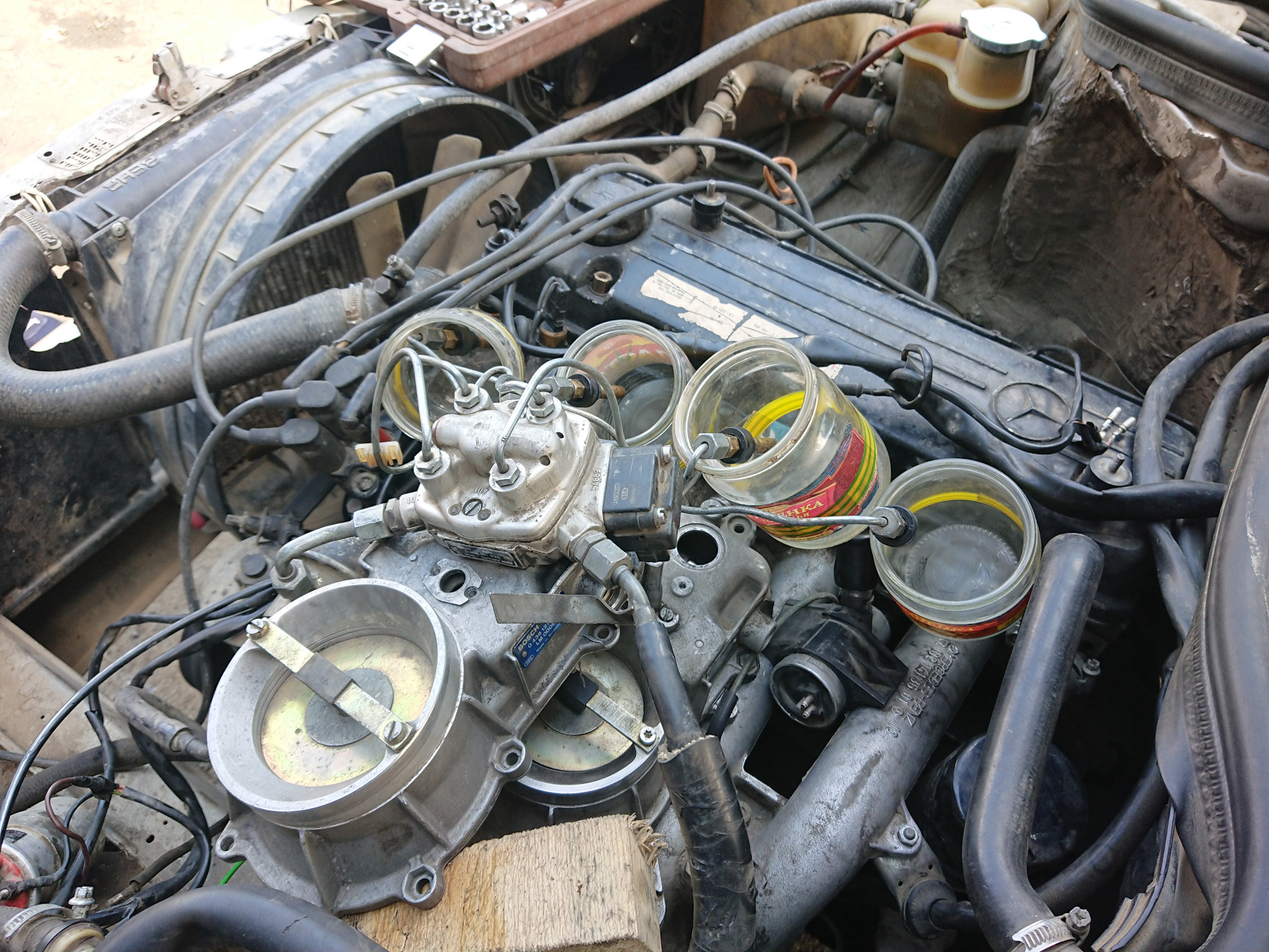Итак, машина Mercedes GE300/W463 «92. Ее проблемки были описаны ниже и после проведенного полного ТО все вылечились. Осталась только одна — легкое подергивание на ХХ. Мастер на ТО сказал что дело в забитости топливной магистрали вообще и конкретно 4 форсунки — то есть работает фактически только 5 цилиндров из 6. Сказал что новые форсунки ставить бесполезно — опять забьются и предложил съездить на промывку системы аппаратом Wynns. Почитав архивы конфы на эту тему, я пришел к выводу что превалируещее мнение конфистов это все промывки — шарлатанство, а на KE-jet и вовсе приведет только к выходу из строя мембраны дозатора. Обсудил это с мастером на ТО — он назвал это бредом и сказал что если мембрана сдохнет, то это от старости и значит ей и так срок уже подошел. Вообщем, скачал я доки и схемы на KE-jet и принялся изучать их. К вечеру пришел к выводу что промывать надо и ничего мембране не будет при условии что промывочная жидкость будет чистой. Мастер на ТО посоветовал очень хорошего дядьку-промывщика по адресу ул. космонавта Волкова, 10. Поехал туда. Дядька действительно оказался грамотный — то что он мне рассказал про процесс вполне совпало с моими выводами на основе изучения схем KE-jet. Подключил он мою машинку к системе и пошел процесс — 15 минут прогонки на ХХ. Затем еще 15 минут шел процесс отмокания. Смысл тут вот в чем — жидкость является по сути смесью керосина с растворителем. Эта смесь сгорает в цилиндрах, но часть оседает на нагаре. Затем во время 15-минутного отмокания этот нагар активно растворяется и размягчается. Затем 3 этап — опять 15 минут прогонки на ХХ и тут я сказал мужичку — нефиг на ХХ, давай я буду 2000-2500 оборотов держать для того чтобы форсунки побольше открыты были. Мужик на меня хитро посмотрел и говорит, вот ведь грамотный попался! :) Но делать нечего — пршлось ему пойти на повышенный расход промывочной жидкости. :) Еще через 15 минут процесс закончился. После этого промывщик сказал следующее: во-первых, сразу после промывки нужно обязательно проехать не менее 10 км на повышенных оборотах (3000+) чтобы система так сказать „просралась“. :) Во-вторых, неизвестно почему, но эффект от промывки наступает обычно только на 3-ий день. И в-третьих, через 3 дня рекомендуется поменять свечи. Вообщем, стал я заводиться — заводится с трудом и движок с
