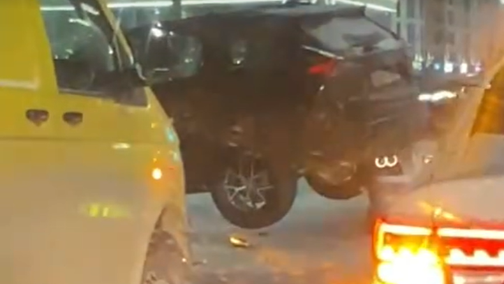 Накануне вечером очевидцы поделились кадрами вечерней аварии. На одной из новых улиц столицы произошло ДТП с участием сразу нескольких машин. От удара кроссовер буквально повис на металлическом дорожном ограждении и легковушке, передаёт BaigeNews.kz со ссылкой на AstanaTV.