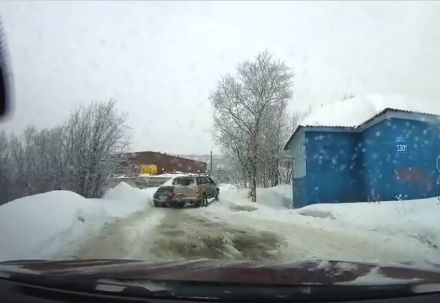 Авария из-за гололеда в Мурманске: внедорожник на спуске скатился на попутную легковушку