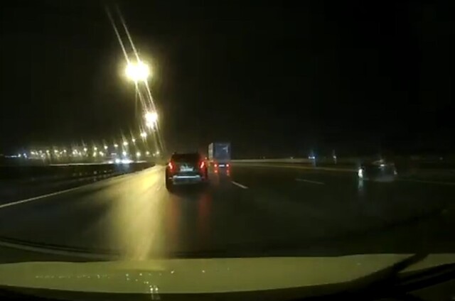 Авария на внутренней стороне КАД перед съездом на Таллинское шоссе. Водитель пытался играть в «шашки» за рулем и врезался в ограждение. Видеорегистратор запечатлел момент столкновения.
