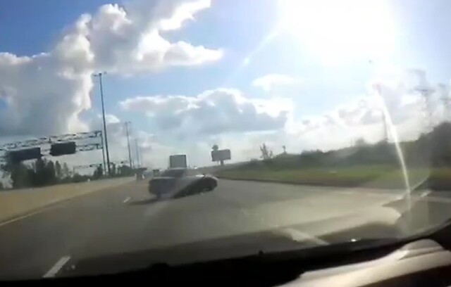 Авария на Киевском шоссе под Петербургом. Фура перестроилась вправо и зацепила легковой автомобиль, который от удара развернуло и ударило об ограждение. Видеорегистратор попутной машины запечатлел момент столкновения.