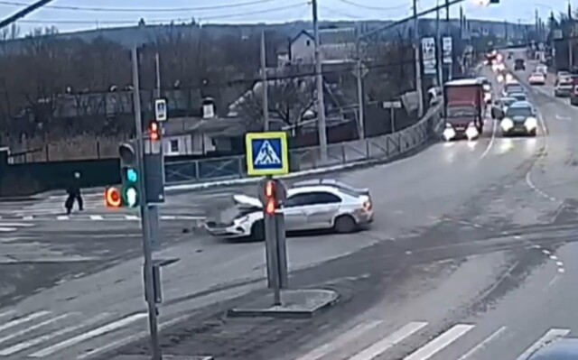 Авария на перекрестке в Белгороде: BMW проехал на красный и столкнулся с поворачивающим автомоби