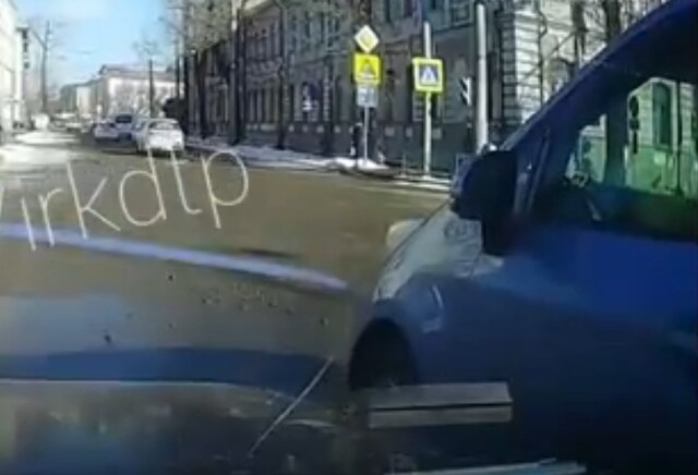 Авария на перекрестке в Иркутске: водитель минивэна пытался провернуть налево с правой полосы