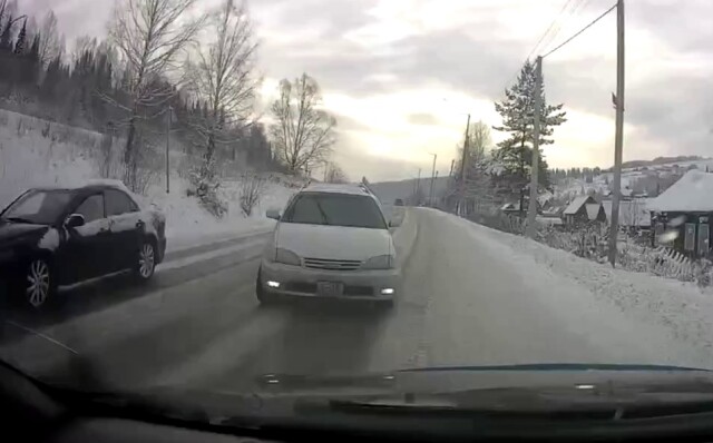 Авария произошла в Таштаголе Кемеровской области. Водитель универсала выехал на встречную полосу и столкнулся с автомобилем, в котором установлен видеорегистратор.