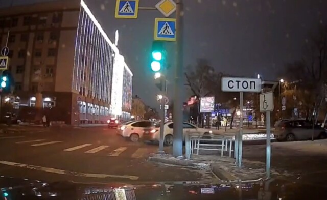 Авария произошла в Тюмени на одном из перекрестков по улице Ленина. Водитель «Гранты» пытался повернуть направо и столкнулся с иномаркой. Момент столкновения запечатлел видеорегистратор очевидца.