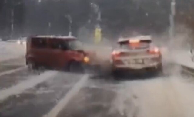 Авария в заснеженном Томске: Nissan выехал на встречную полосу и столкнулся с Hyundai