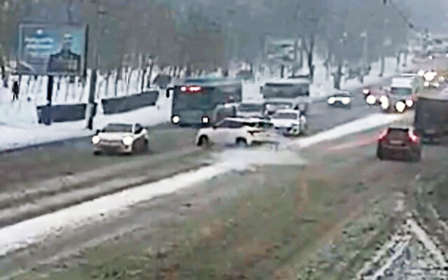 От удара автобус потерял управление и врезался в столб. Пострадали 57-летняя женщина-водитель «Москвича» и два пассажиров автобуса. Момент столкновения зафиксировала камера уличного наблюдения.