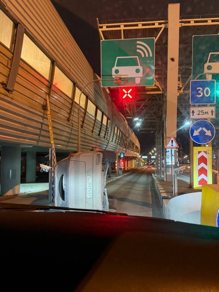 Автомобиль опрокинулся на пункте оплаты ЗСД в Санкт-Петербурге