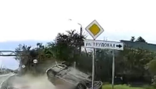 Видеорегистратор запечатлел момент ДТП в Апшеронске Краснодарского края. На Лессельмаше столкнулись два автомобиля, один из которых перевернулся. Происшествие попало в объектив видеорегистратора очевидца.