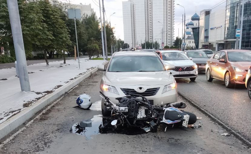 «Байкера отбросило на 30 метров»: мотоцикл столкнулся с двумя автомобилями в Москве