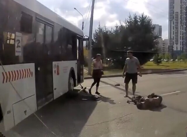 «Бился в конвульсиях»: в Красноярске самокатчик попал под колеса автобуса