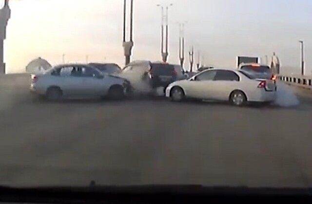 Девять автомобилей столкнулись на Метромосту в Омске