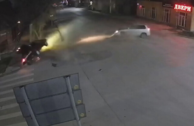 ДТП произошло в Таганроге на перекрестке Чехова и 2-й переулок. ВАЗ-2109 при выезде со второстепенной не пропустил иномарку. От удара «девятка» врезалась в столб и перевернулась. Происшествие попало в объектив камеры.