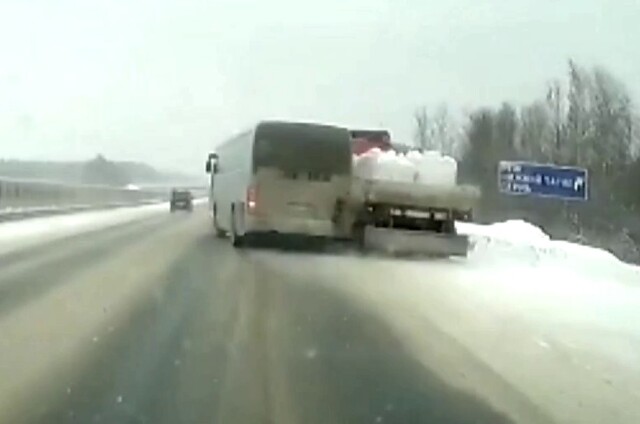ДТП произошло 7 февраля днём на дублёре Сибирского тракта. Перед ЕКАД в сторону Екатеринбурга пассажирский автобус столкнулся со стоящим большегрузом. Момент столкновения попал в объектив видеорегистратора попутного автомобиля.