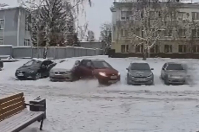 В Елабуге (Татарстан) автоледи пыталась показать «мастер-класс» по парковке задним ходом и столкнулась сразу с двумя автомобилями. Происшествие попало в объектив камеры.