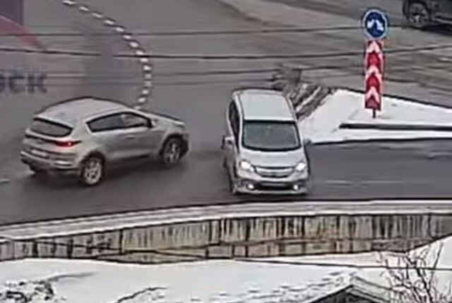 ДТП произошло в Красноярске на перекрестке Озерная 2-ая — Брянская. На кольце столкнулись кроссовер и минивэн. Виновник махал руками и утверждал, что не виноват. Происшествие попало в объектив камеры уличного наблюдения.