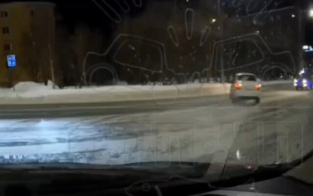 На улице Шевченко в Мурманске водитель белой легковушки не справился с управлением, вылетел на встречную полосу и столкнулся с другим автомобилем. Видеорегистратор очевидца запечатлел момент ДТП.