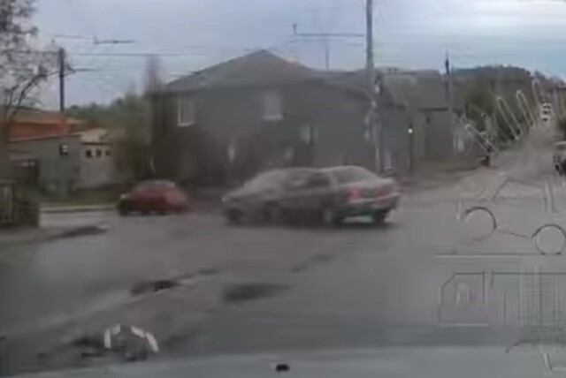 ДТП на Павлова в Мурманске. На глазах у водителя машины с видеорегистратором столкнулись два автомобиля. Как видно на видео, один водитель поворачивал налево на перекрестке, а другой двигался навстречу прямо.