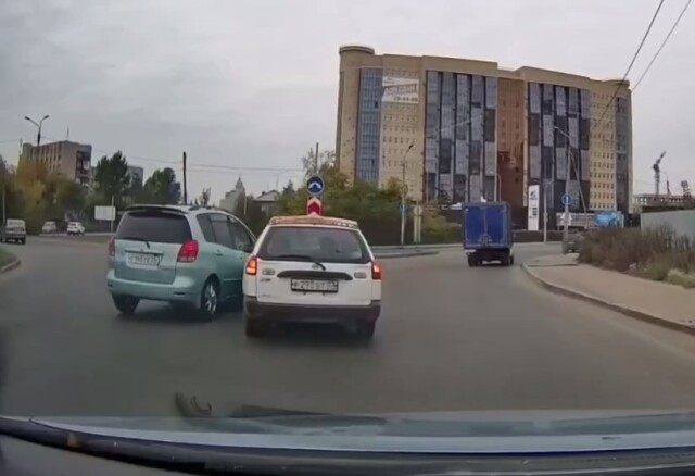 ДТП произошло на кольце Жукова — Бульварная в Омске. На глазах у водителя автомобиля с видеорегистратором столкнулись две легковушки. Как вы считаете, кто виноват?